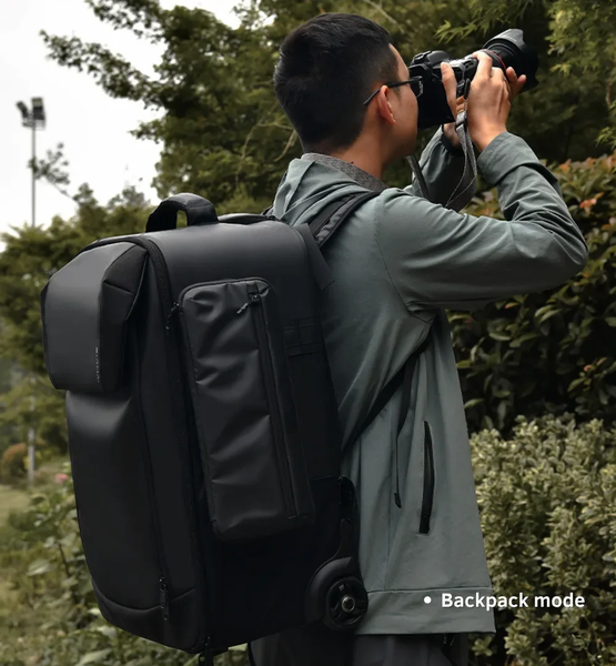 Điểm cộng lớn nhất của Eirmai FT10 chính là khả năng chuyển đổi linh hoạt 2 trong 1 (Carry or Pull Mode). Bạn có thể đeo trên vai để linh hoạt di chuyển qua các địa hình hiểm trở, hoặc chuyển sang chế độ kéo khi ở sân bay để giảm tải áp lực cho cột sống.