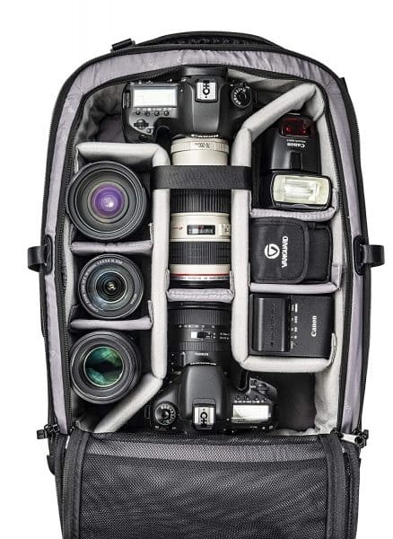 Với phong cách “hành lý ngụy trang”, Vanguard VEO SELECT 55BT khiến người khác khó có thể đoán được sự rộng rãi của khoang bên trong với vô số ngăn chứa linh hoạt, có thể điều chỉnh để phù hợp với 2 máy ảnh DSLR hoặc máy ảnh mirrorless/CSC/hybrid, 4-5 ống kính (lên đến 300mm f/2.8), đèn flash và các phụ kiện khác. Ngoài ra, bạn có thể chứa một chiếc flycam nhỏ hoặc phụ kiện để quay video.