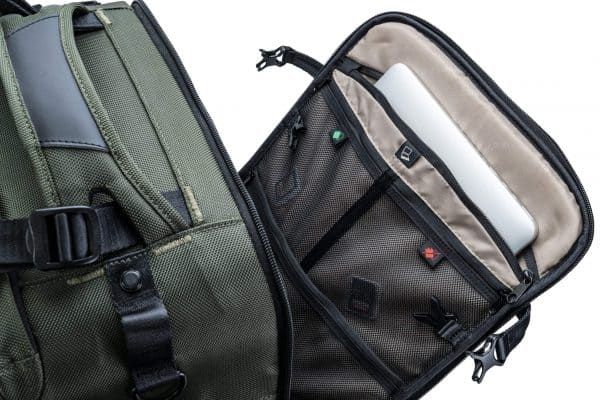 Phần túi đựng bên trong và bên ngoài của chiếc vali này cũng được sắp xếp một cách khoa học, giúp bạn dễ dàng sắp xếp tất cả các vật dụng thiết yếu khác. Bạn có thể đặt một laptop 13” và một máy tính bảng 9.7” trong túi bảo vệ trên nắp mở phía trước. Mặt trước vali cũng được thiết kế một túi đựng khá lớn với 2 khóa kéo để đựng sổ tay.