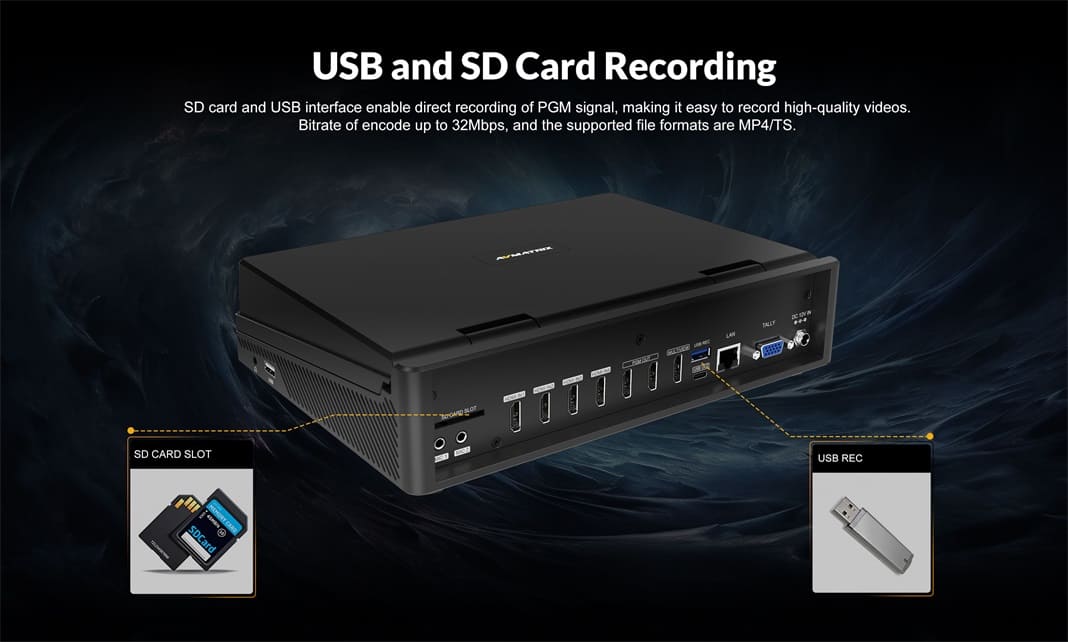 | Video đầu ra | HDMI PGM × 2, HDMI Multiview x 1, LAN × 1 (Luồng RJ45), USB type-C x 1 (Chụp) | |