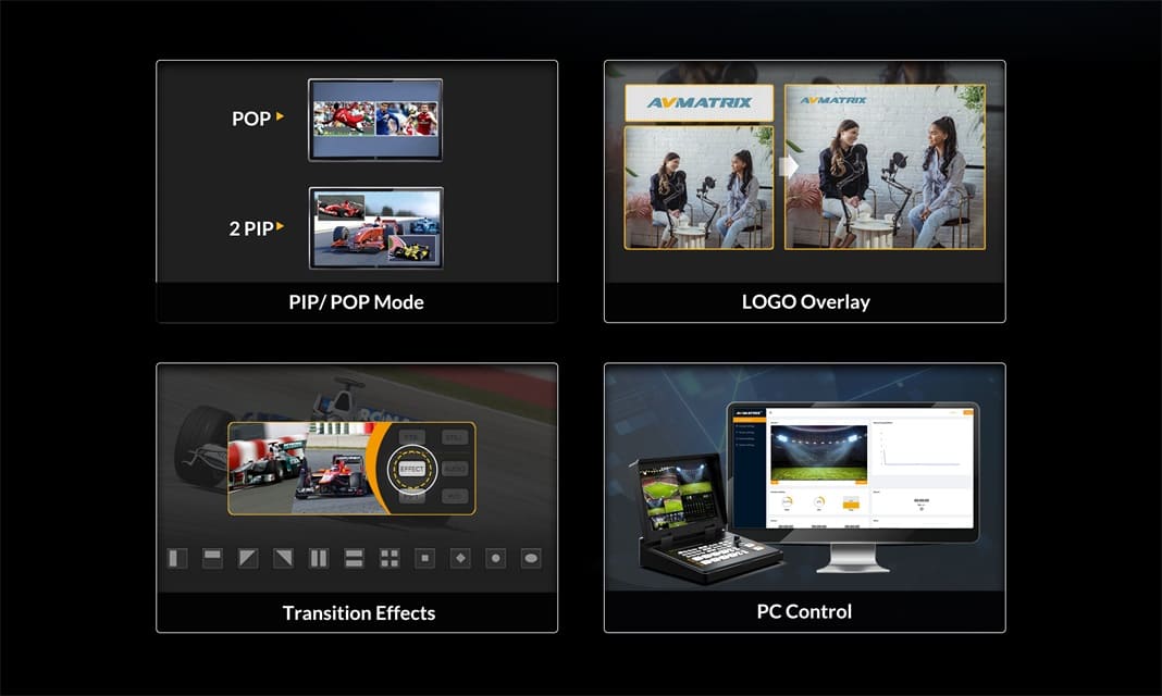| Key | Upstream: Khóa Luma x 1/ Khóa Chroma × 1/PIP × 2/POP Downstream: DSK × 1/ Logo x 1 |