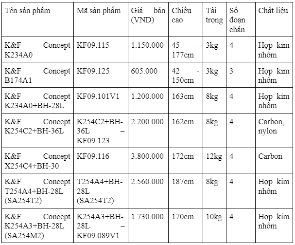 BÁO GIÁ CHÂN MÁY ẢNH K&F CHI TIẾT MỚI NHẤT 2024