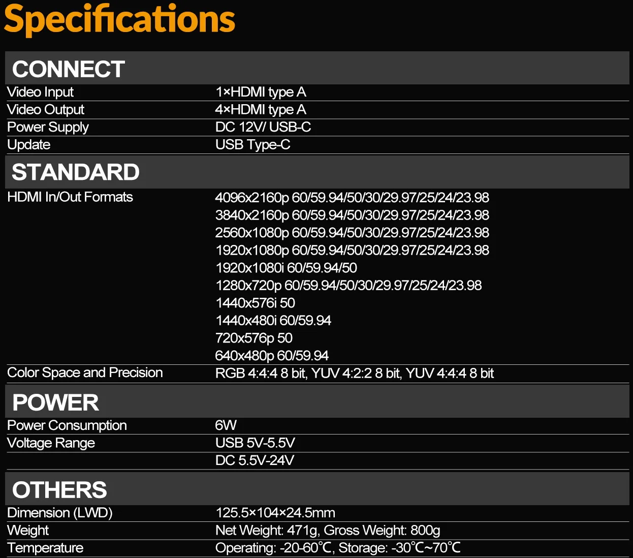 AVMATRIX SD1242-4K là một bộ chia tín hiệu mạnh mẽ và đáng tin cậy, được thiết kế để xử lý và phân phối tín hiệu video 4K/60Hz một cách mượt mà và ổn định.