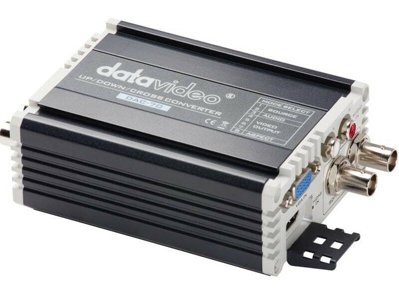 Bộ chuyển đổi lên / xuống của DAC-70 SD / HD / 3GI từ Datavideo chuyển đổi giữa các định dạng SD, HD và 3G. Nó hỗ trợ xử lý video 10 bit và chấp nhận tín hiệu đầu vào video VGA, HDMI và SD / HD-3G-SDI và tự động chuyển đổi chúng sang định dạng đầu ra đã chọn. DAC-70 hỗ trợ độ phân giải lên tới 1080p60 và lên đến 8 kênh âm thanh SDI hoặc HDMI nhúng. Một đầu vào âm thanh L / R tương tự cũng được cung cấp. Nhờ có cổng mini-USB tích hợp, thiết bị Datavideo có thể nâng cấp firmware để hỗ trợ các định dạng video trong tương lai. Một nguồn cung cấp điện và dây 12V / 1A đi kèm.