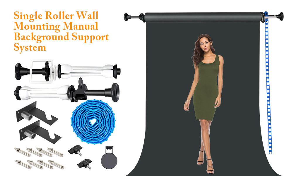 Hoàn hảo cho hệ thống hỗ trợ phông nền bằng giấy. Xích đi kèm được sử dụng để nâng và hạ giấy một cách nhẹ nhàng và trơn tru, đồng thời cũng giúp giữ phông nền không bị gấp khúc.