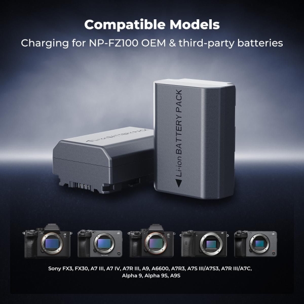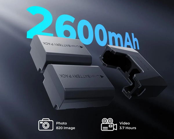 Khác với các dòng pin thay thế thông thường, mỗi viên pin K&F Concept NP-FZ100 trong bộ kit này sở hữu dung lượng lên đến 2600mAh (19.2Wh). Đây là mức dung lượng vượt trội, đảm bảo thời gian quay phim 4K và chụp ảnh liên tiếp kéo dài hơn trên các dòng máy "ngốn" pin như Sony A7 IV, A7R V hay FX30. Công nghệ Lithium-ion cao cấp giúp pin hoạt động ổn định, an toàn và hoàn toàn không có hiệu ứng nhớ.