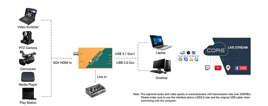 Đầu vào HDMI hoặc SDI và đầu ra USB 3.1 Gen1 (USB3.0)