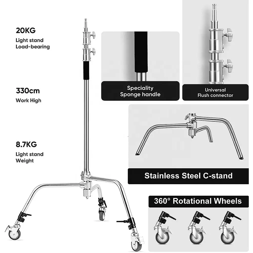 Ứng dụng đa dạng: Chân đế chữ C phù hợp với nhiều loại thiết bị như gương phản chiếu video, ô, hộp mềm, chụp ảnh trên không, đèn đơn sắc... nhờ đầu ren 1/4" và 3/8".