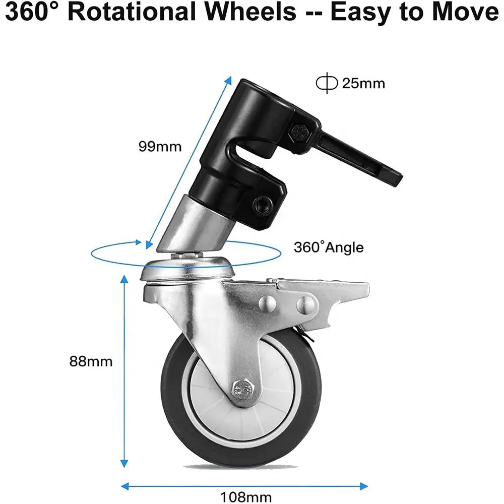 Bánh xe an toàn: Hệ thống khóa từng bước giúp khóa và nhả bánh xe dễ dàng. Khóa bước đảm bảo an toàn khi sử dụng bánh xe. Đế cao su chống trượt mang đến sự ổn định và an tâm khi di chuyển.