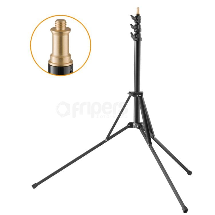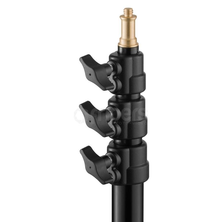 Chân đèn Jinbei L-2400A được trang bị đầu nối spigot với vít 1/4 inch. Điều này làm cho nó tương thích với nhiều loại thiết bị và phụ kiện chiếu sáng. Điều này mang lại cho bạn sự linh hoạt khi sử dụng chân máy với nhiều giải pháp chiếu sáng khác