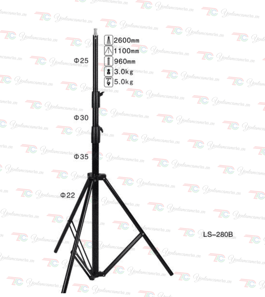 Chiều cao, tải trọng và cân nặng chân đèn NiceFoto LS280B