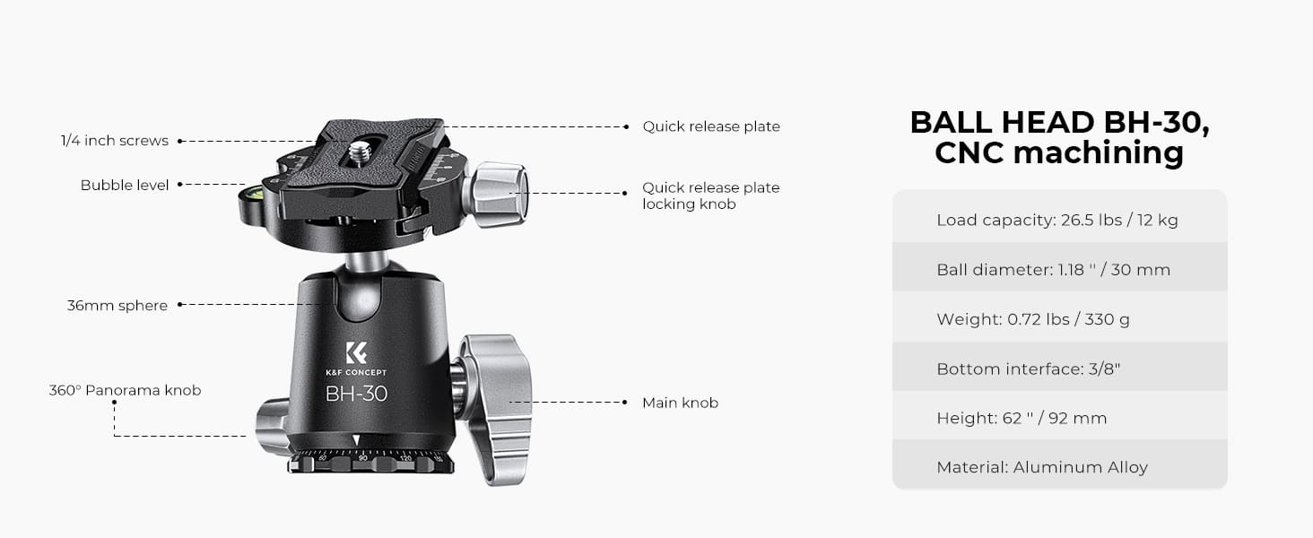 | Chân máy K&F Concept X254C4+BH-30 sợi carbon | |
