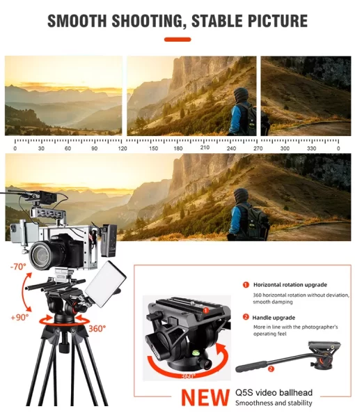 Nó cho phép bạn điều khiển và vận hành máy ảnh của mình một cách dễ dàng.Độ nghiêng có thể điều chỉnh trong khoảng + 90 ° đến -70 °.
