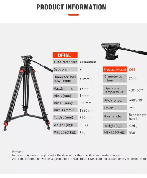 DF16L của Coman là chân máy video hai giai đoạn.Nó đi kèm với Coman Q5S Videohead.Chân máy được làm bằng nhôm có giá trị.