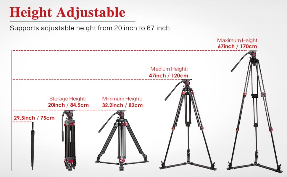 Chân máy có chiều cao tối đa 1700m. Đầu dầu có khả năng xoay 360 độ và phạm vi nghiêng -70 đến 90°. Tải trọng lên đến 8kg .
