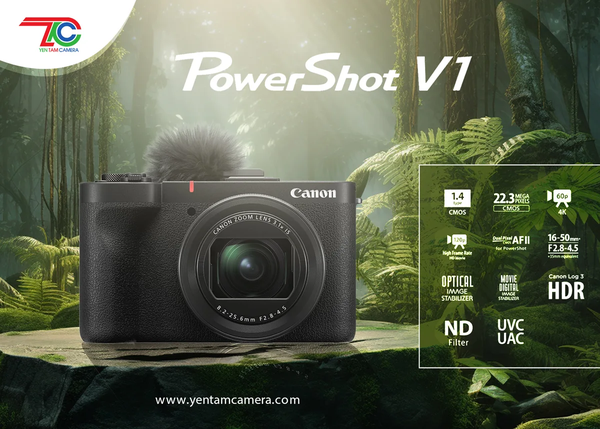 Canon PowerShot V1 là mẫu máy ảnh compact mới nhất của Canon, được thiết kế đặc biệt cho các nhà sáng tạo nội dung, vloggers và những người yêu thích quay video. Với thiết kế nhỏ gọn, cảm biến lớn, và các tính năng tập trung vào quay video, PowerShot V1 hứa hẹn mang đến trải nghiệm sáng tạo chuyên nghiệp trong một thân máy tiện lợi.