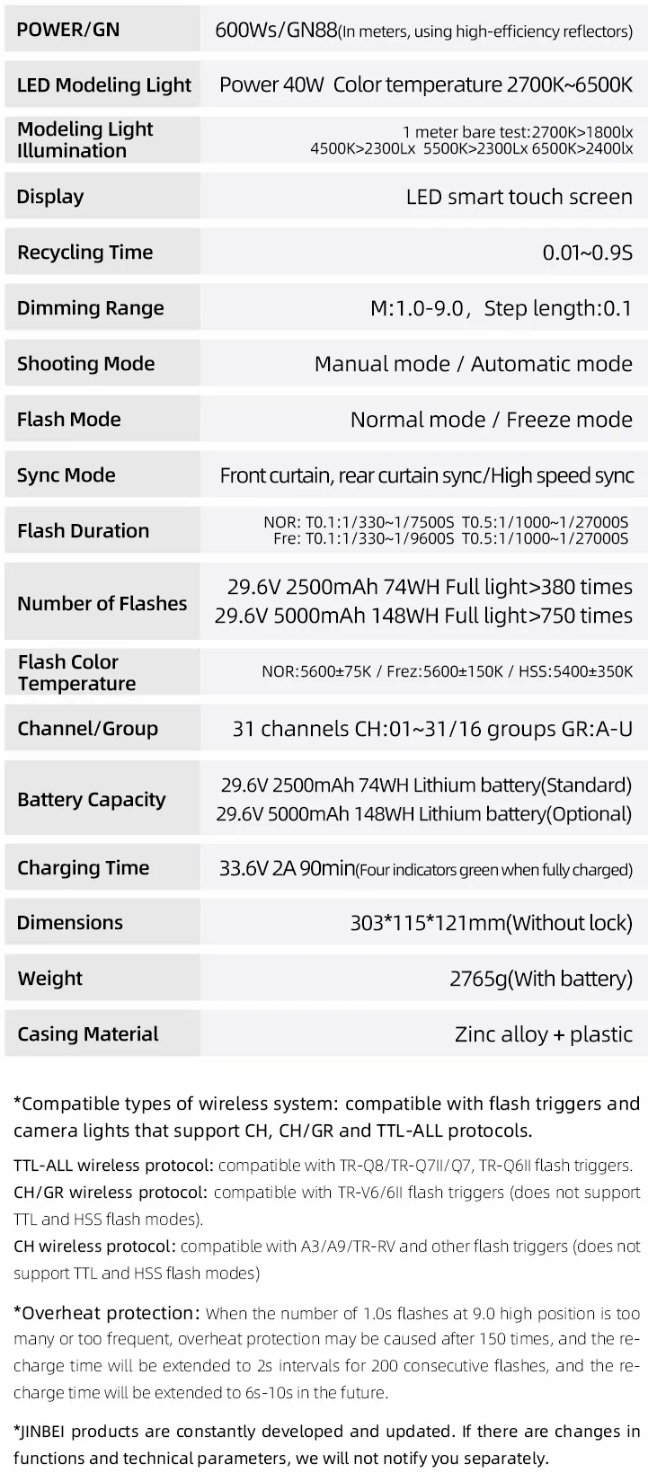 Công Suất 600Ws và GN:88: Đạt chỉ số hướng dẫn GN:88, cung cấp lượng ánh sáng khổng lồ để thống trị ánh nắng mặt trời và làm việc với các modifer ánh sáng lớn.