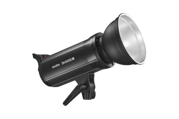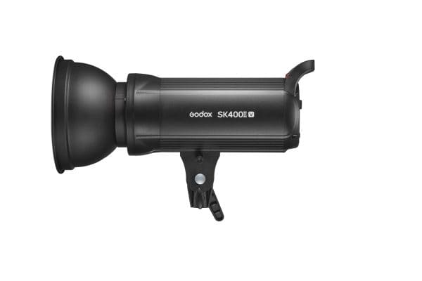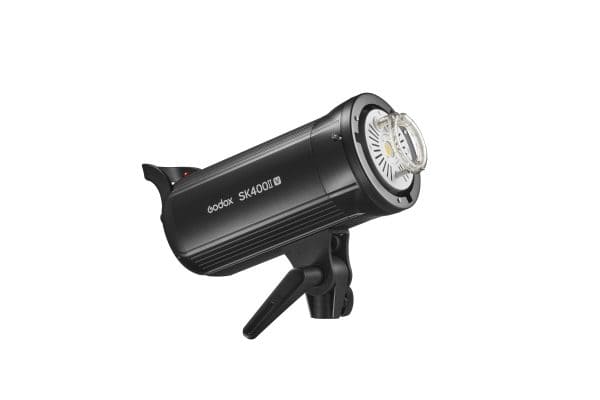 SK400II-V Studio Flash của Godox là nguồn flash cân bằng ánh sáng ban ngày 5700K cung cấp các tính năng cốt lõi và tiện lợi với mức giá hợp lý. SK400II-V là phiên bản mới nhất có đèn mô hình LED 10W và thời gian tái chế nhanh hơn 0,1 – 1,5 giây. Nó cũng có thời lượng flash ngắn tới 1/2000 giây. Công suất có thể thay đổi từ 1/16 đến 1/1 toàn bộ công suất, có thể điều chỉnh trong 40 bước. Cài đặt được truy cập thông qua các nút nhấn phía sau và hiển thị trên màn hình LCD dễ đọc. Các tùy chọn kích hoạt bao gồm khả năng tương thích nguyên bản với hệ thống kích hoạt X 2,4GHz của Godox (X2T và XPro), dây đồng bộ, nút kiểm tra và kích hoạt nô lệ.