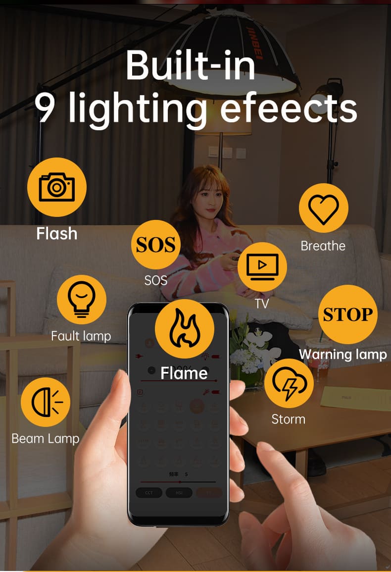 | Hiệu ứng ánh sáng | Tiếng Anh: TV/Badbulb/Lightning/Fire/Breathing/Paparazzi/High&Low light/SOS/WarningLight Tiếng Việt: TV/Bóng đèn hỏng/Tia chớp/Lửa/Tay săn ảnh/Nhịp thở/Ánh sáng mạnh và yếu/SOS/Đèn cảnh báo |