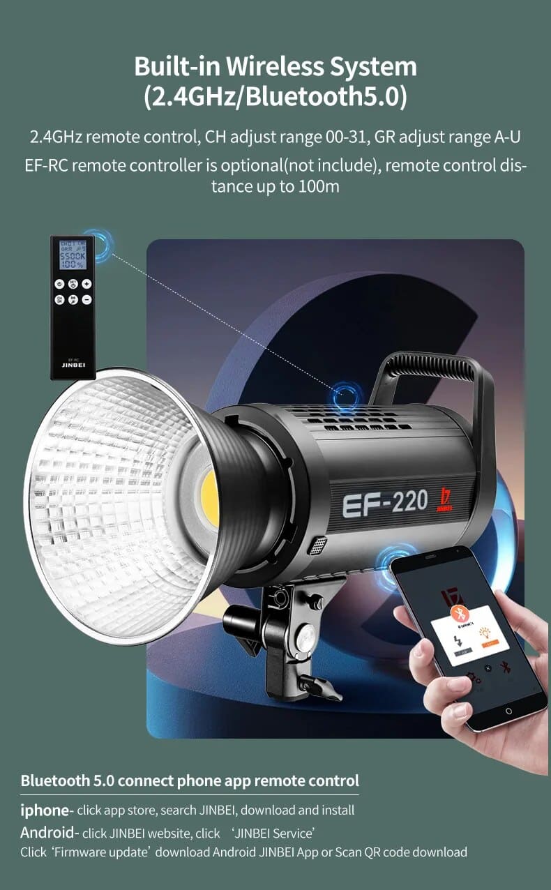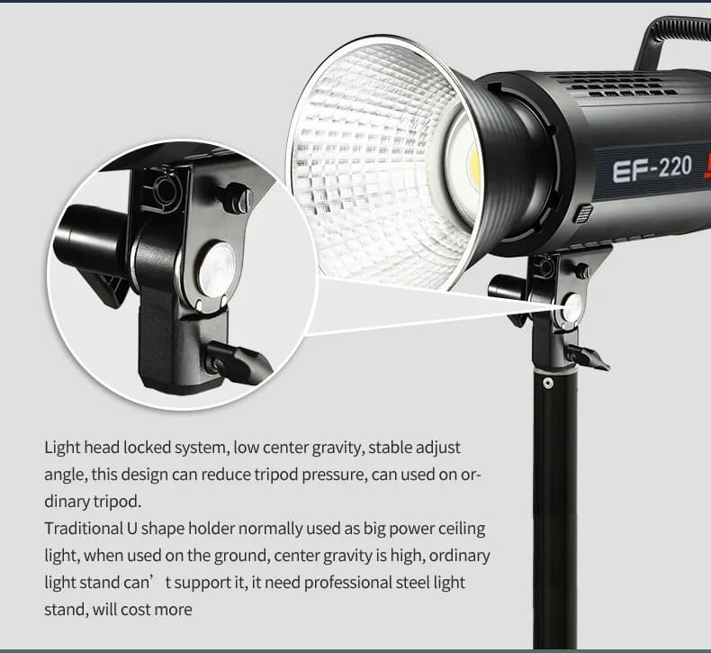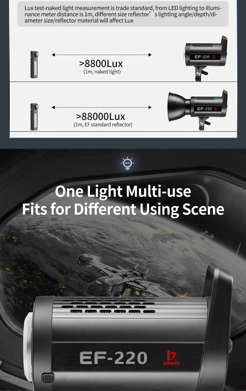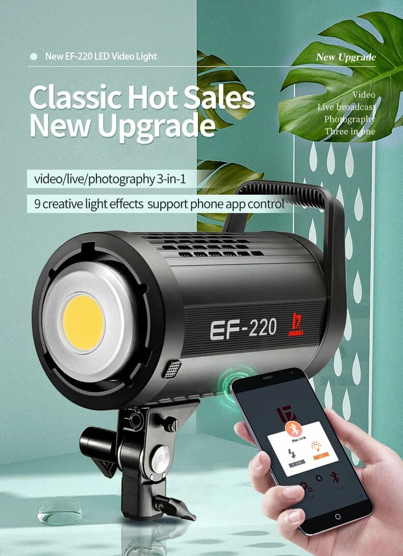 Đèn led studio Jinbei EF-220 có kích thước nhỏ gọn dễ dàng di chuyển hay setup, Jinbei EF-200 sử dụng công nghệ ánh sáng liên tục LED hiện đại nhất được tích hợp trong lớp vỏ hợp kim nhôm chắc chắn, rất phù hợp để sử dụng trong quay phim và chụp ảnh. Đèn kèm ngàm Bowens đa năng thích hợp nhiều các phụ kiện.