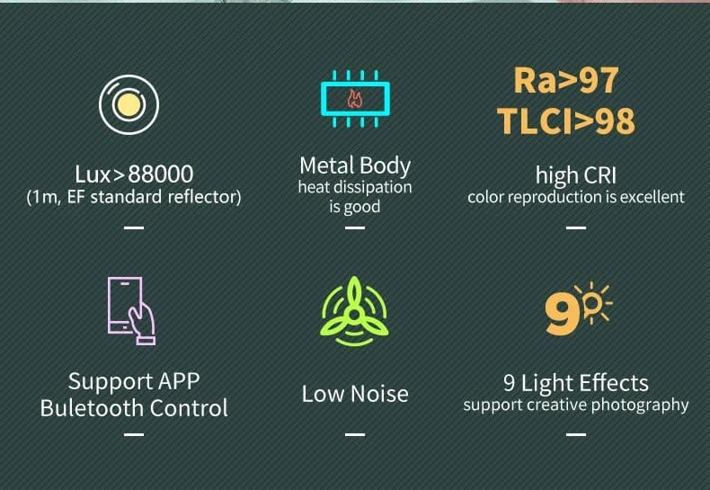 | Độ sáng 100% (phạm vi 1m) ở 5500K không choá | >8800Lux |