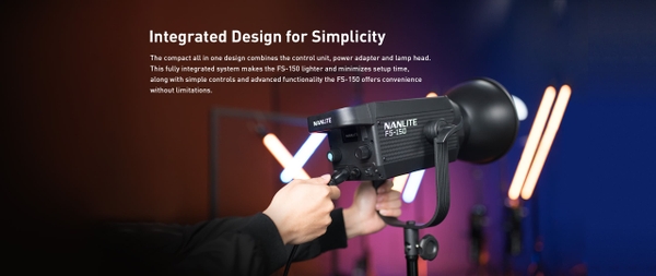 Thiết kế nhỏ gọn tất cả trong một kết hợp bộ điều khiển, bộ đổi nguồn và đầu đèn. Hệ thống tích hợp đầy đủ này giúp FS-150 nhẹ hơn và giảm thiểu thời gian thiết lập, cùng với các điều khiển đơn giản và chức năng nâng cao, FS-150 mang đến sự tiện lợi mà không có giới hạn.