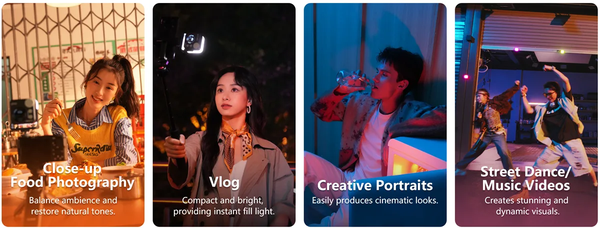 Vlogging và Streaming: Hoàn hảo để tạo ánh sáng mắt (catchlight), ánh sáng tóc (hair light) hoặc làm đèn nhấn (key light) trong các buổi quay gần.