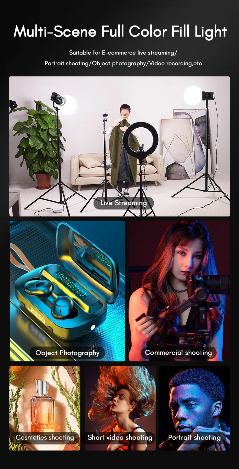 Nó có thể được sử dụng để phát trực tiếp, chiếu sáng trò chuyện video, hiển thị màn hình điều khiển, giá đỡ điện thoại di động, máy ảnh trẻ em, v.v.