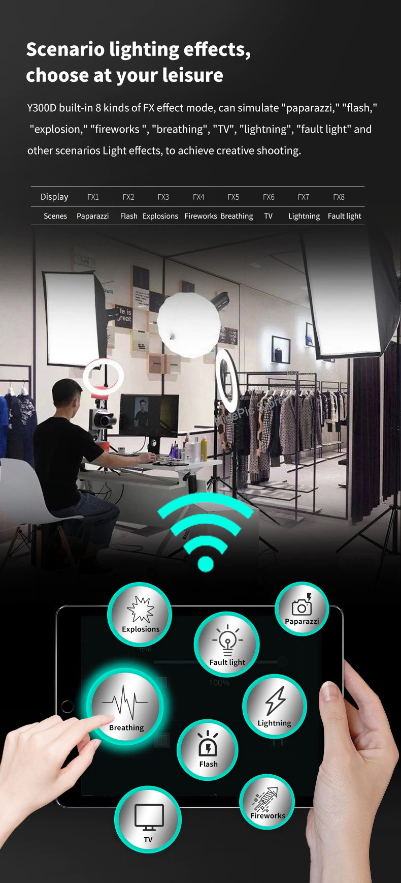 | Hiệu ứng đặc biệt | paparazzi, đèn flash, hiệu ứng ánh sáng nổ, pháo hoa, hiệu ứng ánh sáng thở, hiệu ứng ánh sáng TV, hiệu ứng ánh sáng sét, bóng đèn chớp |