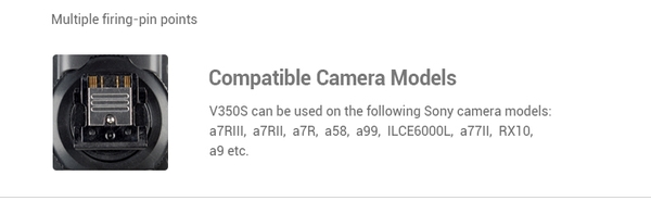 Godox V350S tương thích với nhiều dòng máy ảnh Sony