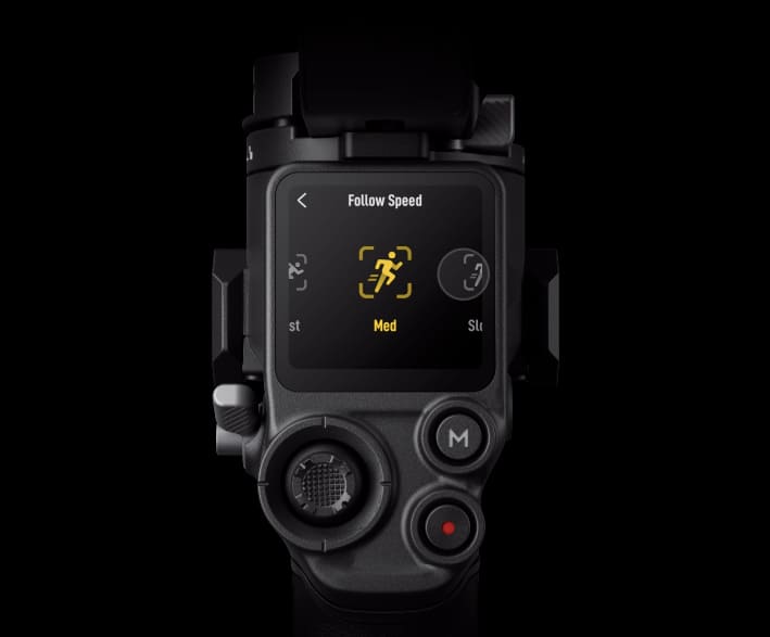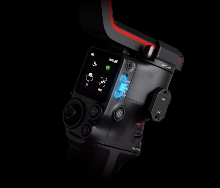 Chỉ cần trượt nút công tắc chế độ gimbal mới (nằm ở phía cạnh phải so với màn hình cảm ứng gimbal), người dùng có thể luân phiên chuyển đổi giữa các chế độ Pan follow, Pan và Tilt follow, các chế độ FPV. Ở chế độ tùy chọn FPV, người dùng cũng có thể tùy chỉnh thành 3D Roll 360, Portrait hoặc Custom, cho phép bạn điều chỉnh thiết bị và sẵn sàng sử dụng gimbal một cách nhanh nhất.