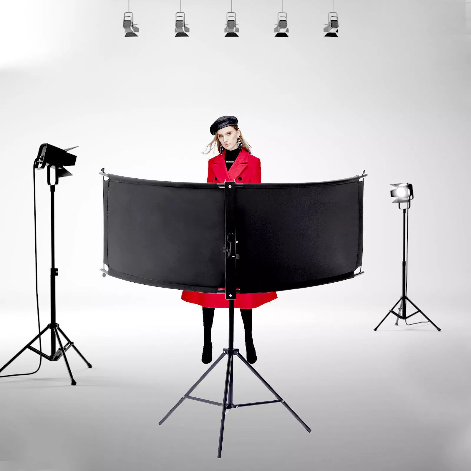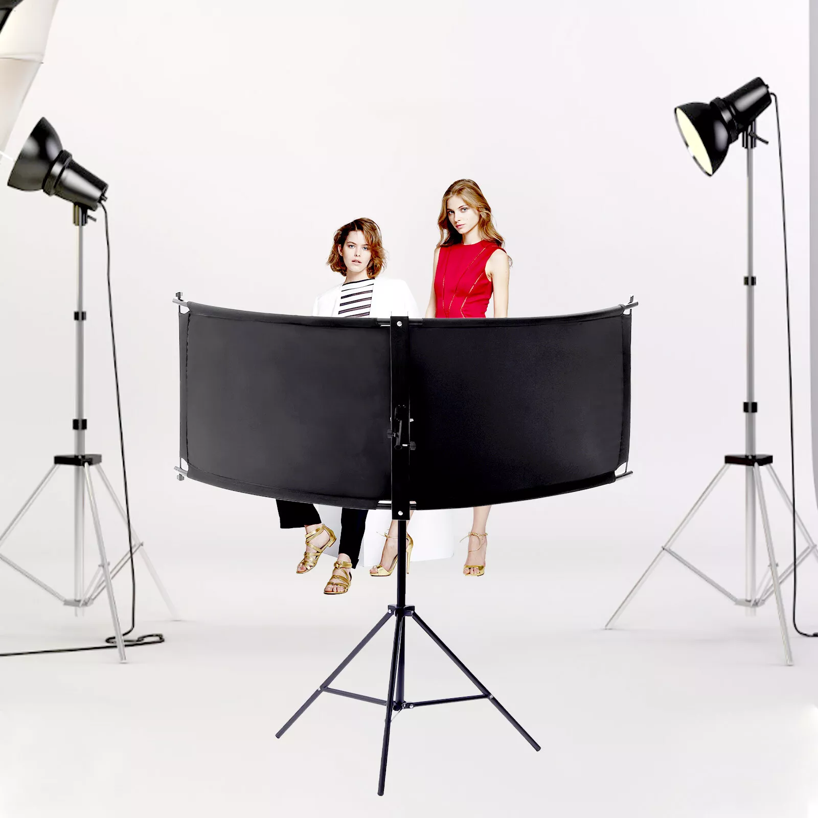 Được thiết kế với chất liệu vải bạc có độ phản chiếu cao. Thiết kế hình vòng cung để tạo ra một ánh sáng với cùng độ cong của mắt người. Sự phản chiếu trông tự nhiên này tạo ra một hình ảnh quan trọng trong ảnh chân dung, thời trang.
