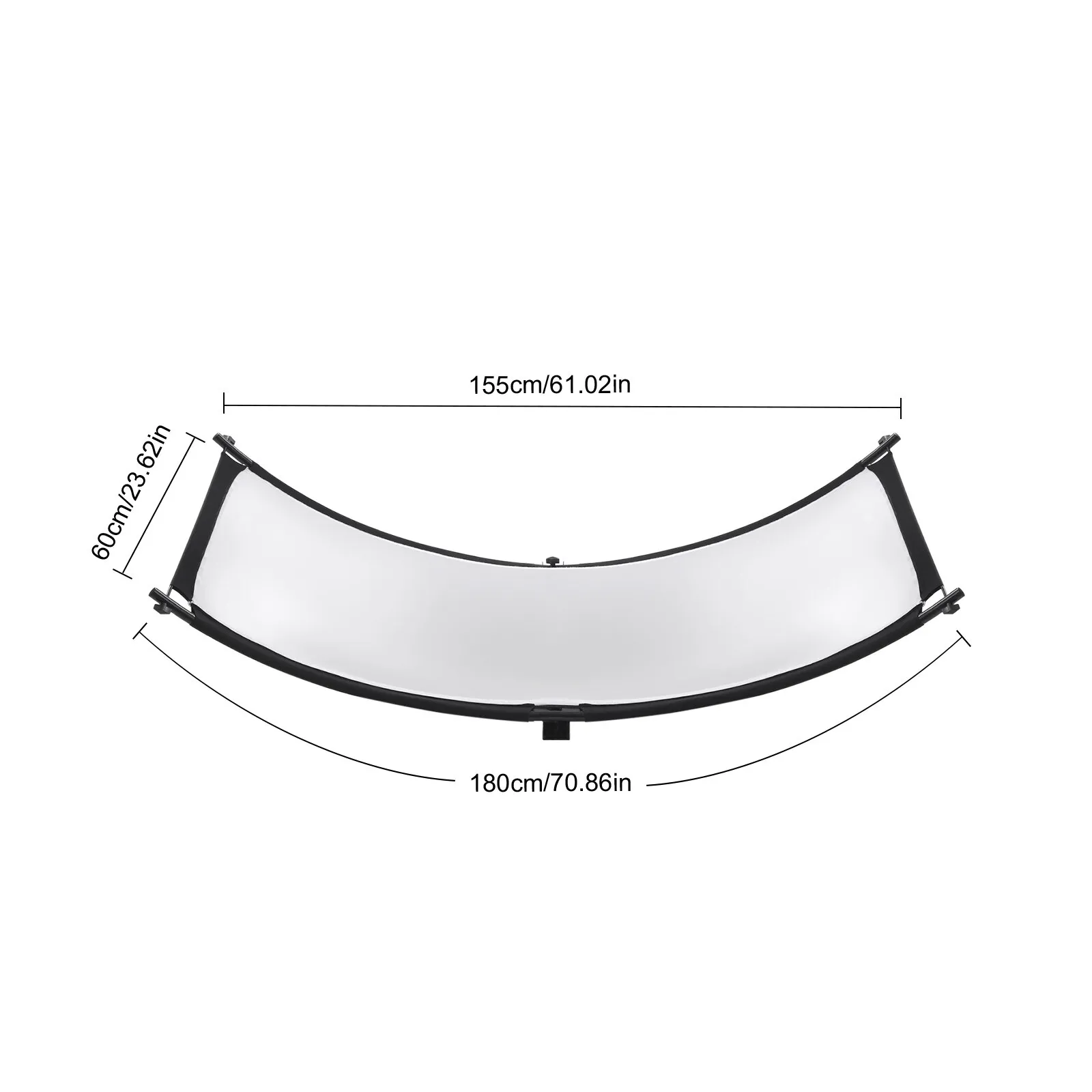 Không giống như gương phản xạ phẳng, phản xạ cong này được xây dựng bằng vải phản quang cao cấp, cho phép phản chiếu bao quanh tối ưu, chiếu sáng đồng đều đối tượng của bạn. Khung và thanh hỗ trợ có cấu trúc bằng nhôm, bền nhưng nhẹ để dễ dàng lắp đặt và di chuyển.