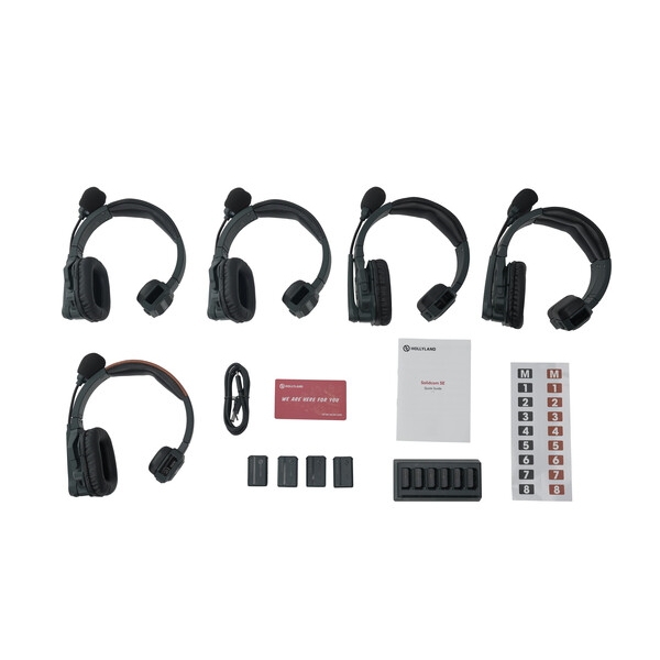 Solidcom SE – 5S Kit: Bao gồm 1 Tai nghe Master và 4 Tai nghe Remote. Lựa chọn tối ưu cho các sản xuất quy mô lớn hơn hoặc các sự kiện cần nhiều thành viên tham gia vào đường dây giao tiếp.