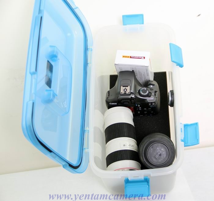 Hộp chống ẩm bao gồm 1 hộp nhựa cao cấp kín khí có đồng hồ đo ẩm, 1 cục sạc chống ẩm.