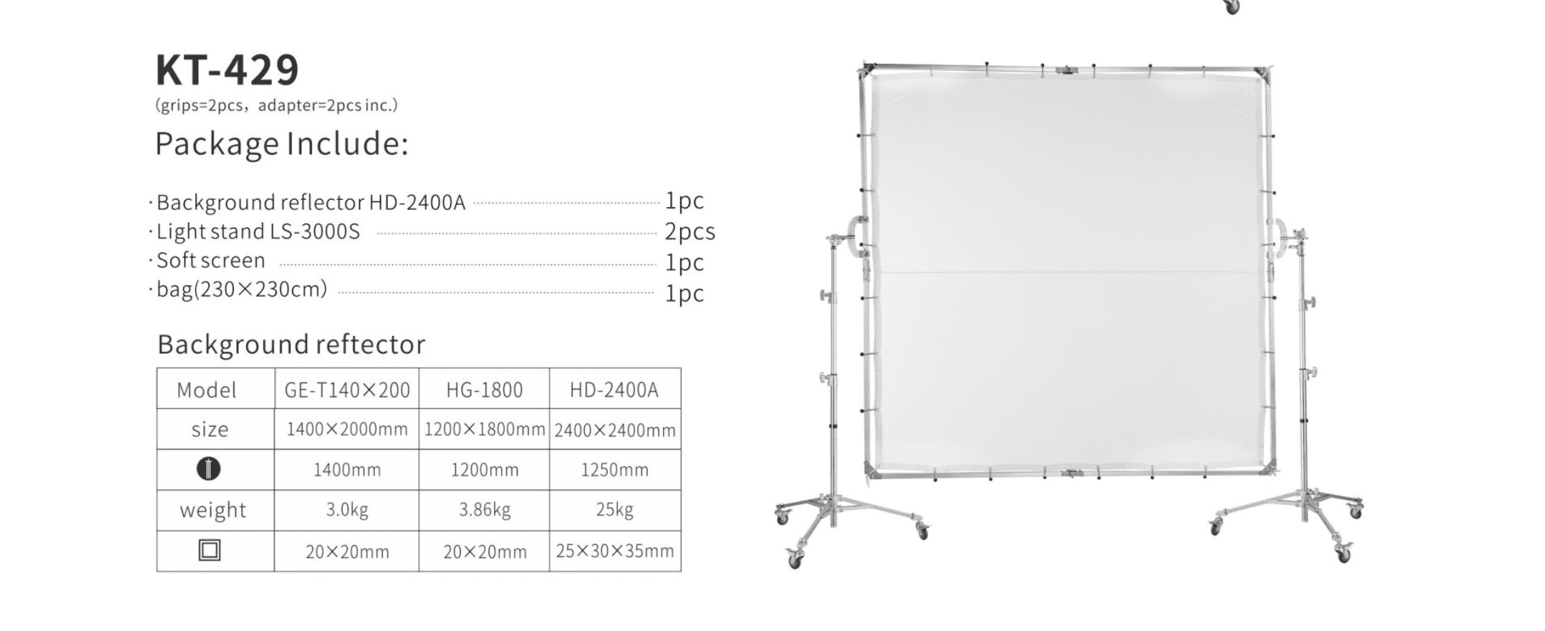 Đi kèm là 2 chân đế LS-3000 chịu tải lên đến 10kg, giúp bạn dễ dàng di chuyển khung tản sáng. Với khung tản sáng Nicefoto KT-429, bạn sẽ có được ánh sáng mềm mại, tản đều, lý tưởng cho quay phim, chụp ảnh chân dung, sản phẩm và nhiều ứng dụng khác.