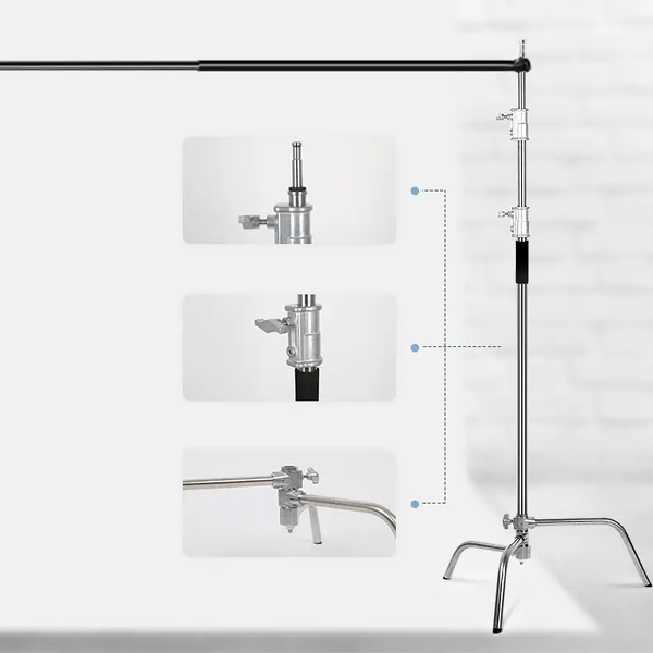 Ốc 1/8 ở mỗi đầu thanh ngang, cho phép bạn sử dụng thanh ngang trên bất kỳ chân đèn nào