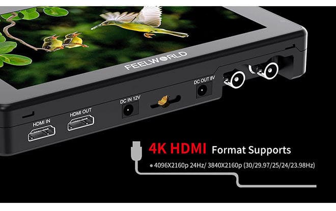 Với cả đầu vào HDMI 3G-SDI và 4K, bạn có thể kết nối nó với bất kỳ máy ảnh mirorless hoặc máy quay hoặc thậm chí cả máy ảnh DSLR. Bạn cũng nhận được đầu ra vòng lặp, vì vậy bạn có thể hiển thị video trực tiếp hoặc mở rộng hiển thị trên màn hình bên ngoài hoặc máy chiếu có âm thanh nhúng. Bạn cũng có thể theo dõi âm thanh bằng giắc cắm tai nghe âm thanh nổi 3,5 mm. Về nguồn điện, có một đầu vào 12V DC và một khe cắm pin NP-F.