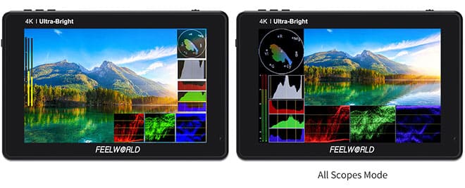 FEELWORLD LUT7S PRO cho phép giám sát trường và phân tích hình ảnh rõ ràng và chính xác trong các cảnh quay ban ngày. Nó hiển thị ảnh tĩnh và nội dung giám sát của bạn với độ trung thực màu vượt trội và độ phân giải tối đa 1920 x 1200 trên màn hình 7 inch. Bảng điều khiển được làm bằng kính liên kết quang học với lớp phủ chống phản chiếu, cho phép theo dõi trường ban ngày thoải mái. Nhưng điều thực sự làm nên sự khác biệt của nó là đèn nền đi-ốt phát quang (LED), tạo ra độ sáng 2200 nit và hiển thị tỷ lệ tương phản 1200:1 cùng Gam màu sRGB / Rec.709, giúp màn hình có độ rõ nét đặc biệt ngay cả trong điều kiện ánh sáng mạnh điều kiện. Với màn hình hiển thị nội dung của bạn ở 323 điểm ảnh trên inch (PPI), bạn có thể yên tâm chụp ảnh dưới ánh sáng ban ngày và tinh chỉnh nội dung ngay tại chỗ. Góc nhìn rộng 160º giúp nhiều thành viên trong đoàn dễ dàng xem cùng lúc.