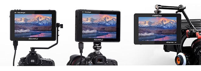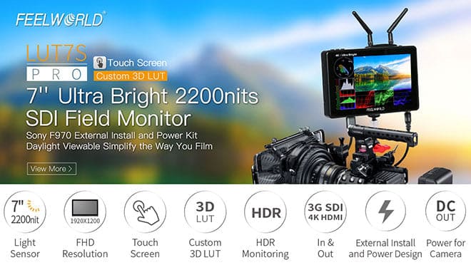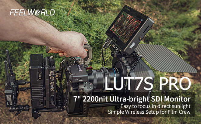 LUT7S PRO trang bị cho các nhà làm phim những lợi ích của màn hình lớn trên máy ảnh mà không làm cho việc thiết lập máy ảnh trở nên cồng kềnh. FEELWORLD LUT7S PRO được tích hợp nhiều tính năng giám sát cao cấp, LUT7S PRO có thể kết nối với hầu hết mọi camera. Mặt trước có màn hình cảm ứng LCD lớn, độ phân giải cao, có thể xem được ánh sáng ban ngày, có các kết nối video ở phía dưới và khe cắm thẻ SD ở bên cạnh. Có một tấm pin F970 và cổng cắm bộ phát không dây, đèn LED và những thứ khác được trang bị tấm pin Sony F970. Khung bên ngoài có các điểm gắn ¼” tiêu chuẩn ở phía dưới, bên trái và bên phải để gắn nó vào máy ảnh và khung Smallrig. Chi tiết thiết kế này giúp LUT7S PRO dễ dàng gắn vào máy ảnh và dễ dàng chia sẻ với thành viên trong nhóm hoặc khách hàng trên trường quay.