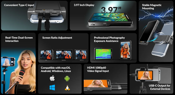 Bạn là vlogger, streamer hay nhà sáng tạo nội dung luôn muốn sử dụng camera sau của điện thoại để có chất lượng hình ảnh tốt nhất, nhưng lại gặp khó khăn trong việc canh khung hình? Hãy để AVMATRIX VM40 trở thành "đôi mắt" phụ hoàn hảo, giúp bạn theo dõi hình ảnh theo thời gian thực và tự tin tạo ra những thước phim chuyên nghiệp, sắc nét nhất!