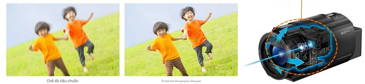 Điểm làm nên danh tiếng của dòng Handycam này chính là công nghệ chống rung quang học không gian (Balanced Optical SteadyShot). Khác với chống rung điện tử thông thường, toàn bộ cụm ống kính và cảm biến bên trong AX45A được thiết kế để "bay" lơ lửng, giúp triệt tiêu rung động ngay cả khi bạn vừa đi bộ vừa quay hay đang zoom cận cảnh.
