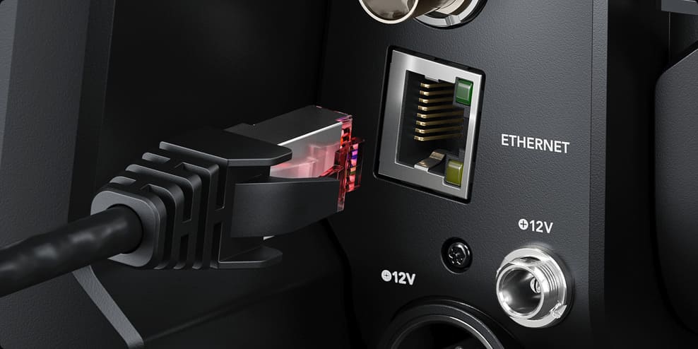 Blackmagic Studio Camera có thể được kết nối theo nhiều cách khác nhau! Tất cả các kiểu máy đều có HDMI nên rất phù hợp cho các bộ chuyển đổi HDMI như ATEM Mini. HDMI hỗ trợ kích hoạt video, kiểm đếm, điều khiển và ghi cho quy trình làm việc theo phong cách phát sóng bằng cách sử dụng một cáp HDMI duy nhất. Blackmagic Studio Camera 4K Pro có 12G ‑ SDI để bạn có thể kết nối nó với các bộ chuyển đổi dựa trên SDI như ATEM Constellation. Có một kết nối 12G ‑ SDI cho video camera và một kết nối để quay lại chương trình. Chương trình quay lại cũng bao gồm kiểm đếm, đàm thoại và điều khiển camera từ xa. Hoặc bạn có thể sử dụng Ethernet 10G để tải video camera, quay lại chương trình, kiểm đếm, đàm thoại, điều khiển camera và thậm chí cấp nguồn bằng cáp Ethernet Cat6A thông thường!