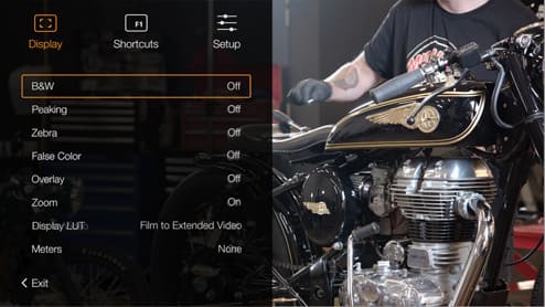 Màn hình hiển thị trạng thái là một màn hình LCD có độ sáng cao được trang bị đèn nền, được thiết kế để người dùng dễ dàng nhìn thấy các thông số hiển thị trên đó ngay cả dưới điều kiện ánh sáng mặt trời gay gắt. Màn hình hiển thị trạng thái cho thấy các thông số như record timecode, locked timecode và reference timecode, cùng với tốc độ khung hình, góc màn trập, khẩu độ, cân bằng trắng, ISO và IRIS. Nó cũng có chỉ báo thời lượng Pin, tình trạng ghi của thẻ và đồng hồ đo âm thanh để giám sát mức âm lượng. Đèn nền của màn hình có thể được bật lên trong môi trường quay thiếu sáng, hoặc tắt đi khi quay ngoài trời và dưới điều kiện ánh sáng mạnh để tăng độ tương phản, giúp người dùng có thể dễ dàng đọc được các thông tin trên đó.