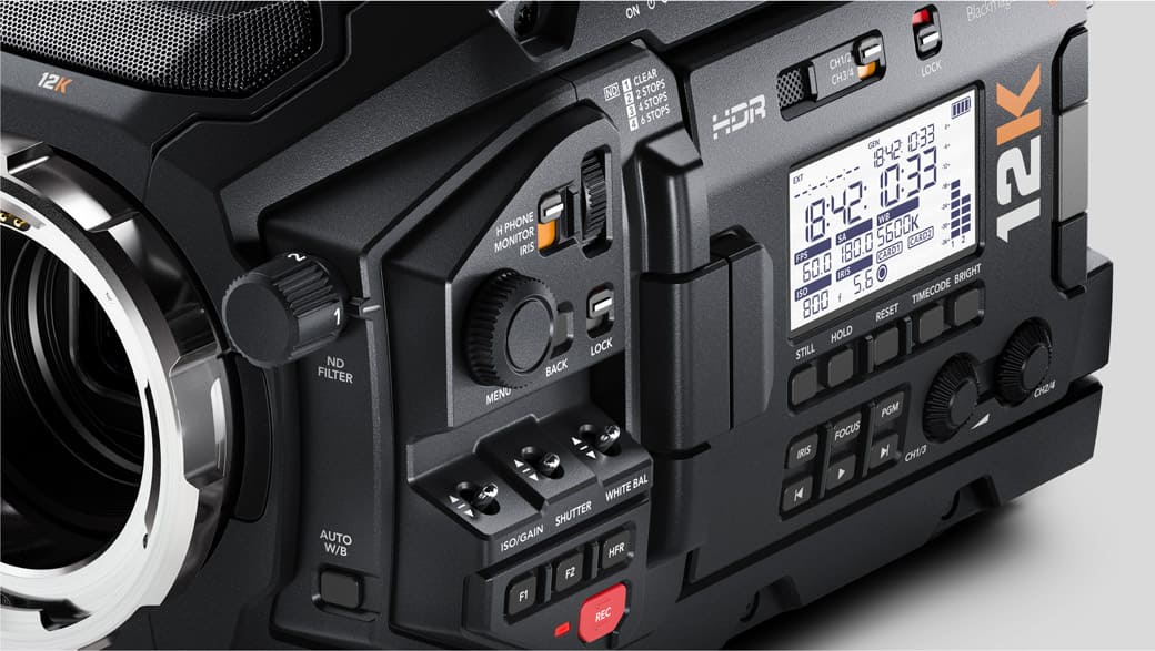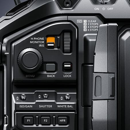 Như các máy quay truyền hình tốt nhất trên thế giới hiện nay, URSA Mini Pro 4.6K G2 có các điều khiển độc lập cho phép truy cập vào các thiết đặt quan trọng nhất trên máy quay. Các nút bấm, nút gạt và nút xoay được bố trí một cách logic để khiến người dùng dễ dàng tìm thấy điều khiển mà mình cần trong khi đang dùng viewfinder. Điều này có nghĩa là bạn có thể điều chỉnh các thiết đặt, bật ND filter hoặc thậm chí thay đổi tốc độ khung hình mà không cần phải mở màn hình cảm ứng hoặc đưa máy quay ra khỏi vai.