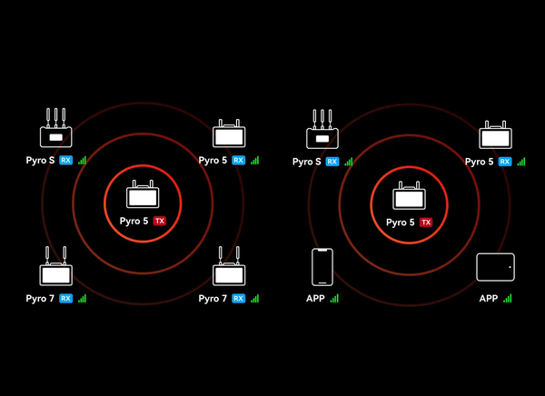 Đặc biệt, một thiết bị phát Pyro có thể kết nối với bốn thiết bị nhận cùng lúc, cho phép cả đạo diễn, kỹ thuật viên và các thành viên khác trong đoàn phim cùng giám sát hình ảnh từ nhiều góc độ.