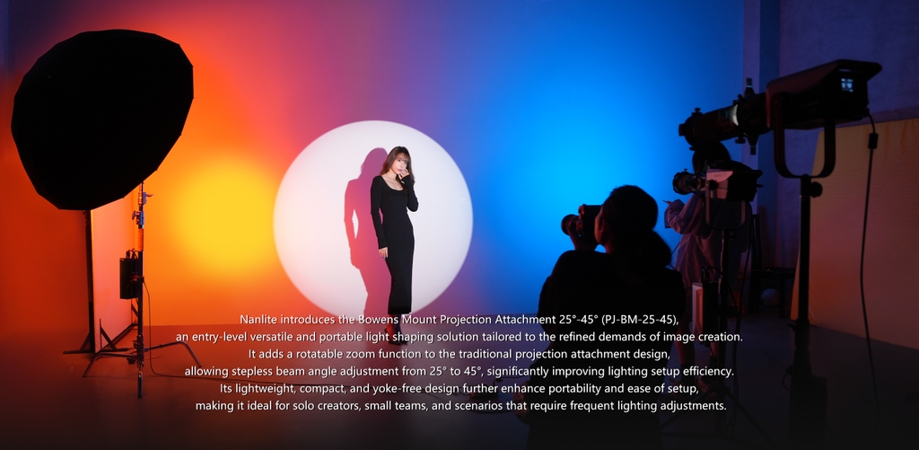 Nanlite ra mắt Bowens Mount Projection Attachment 25°-45° (PJ-BM-25-45), công cụ tạo hình ánh sáng di động, đa năng, đáp ứng nhu cầu khắt khe trong nhiếp ảnh.