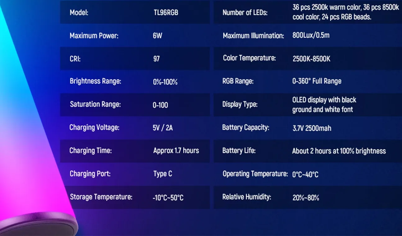 Neewer TL96 RGB là sự kết hợp hoàn hảo giữa thiết kế siêu di động, công nghệ ánh sáng tiên tiến và khả năng sáng tạo không giới hạn: