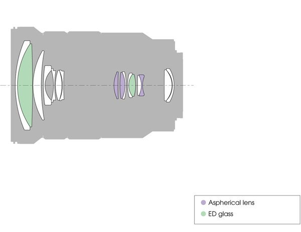 | Thiết kế quang học | 16 yếu tố trong 12 nhóm |