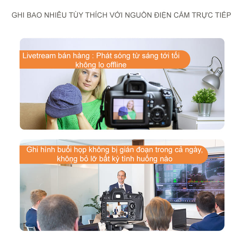 * Hoạt động linh hoạt: Sử dụng đa dạng trong nhiều tình huống, từ ghi hình sự kiện, livestream bán hàng đến ghi lại những khoảnh khắc đáng nhớ.